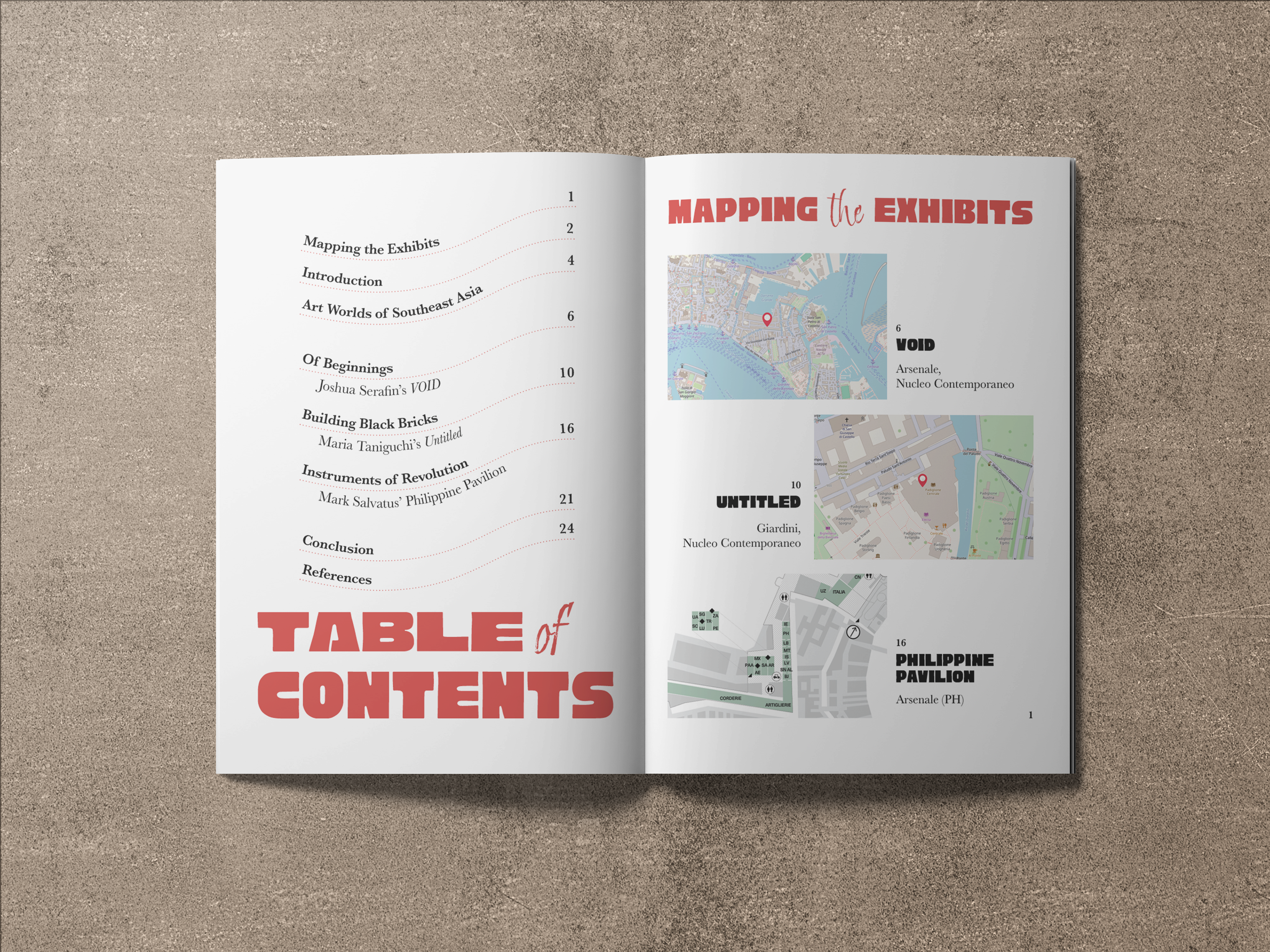 The Worlds Within Islands Zine Project captures the essence of cultural storytelling through research, writing, and design. The 28-page booklet presents my commentary on the works of three contemporary Filipino artists at the Venice Biennale, also known as “The Olympics of the Art World.” The project began with my opportunity to travel to Italy and experience the installations from Joshua Serafin, Maria Taniguchi, and Mark Salvatus. I then developed an argument for the position of Filipino artists in the contemporary art scene and now present my findings using a designed-from-scratch layout, original photography, and typefaces from fellow Filipino graphic designers.
